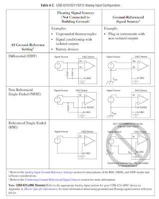 | Figure 1: Input modes for analog input on a USB-6212 digitizer. Reproduced without permission but I'm trying to explain their product so they shouldn't complain. |