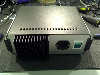 At this point I noticed a peculiarity: despite my noise being in the kHz-range, setting the low-pass filter on the amplifier (down to 100Hz) didn't make any difference whatsoever. Wrapping the model-cell into grounded tin-foil didn't have any effect either. Even disconnecting the headstage from the amplifier entirely left the noise unchanged. This led me to believe that the problem must be somewhere between the amplifier and the PC or the amplifier itself.