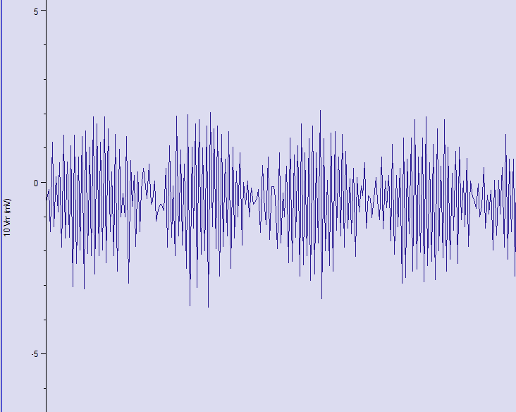| Figure 7: Noise on the Axoclamp-2A. Around 12Hz frequency. Expressing the amount of sense this made to me in per-cent: Zero %. |