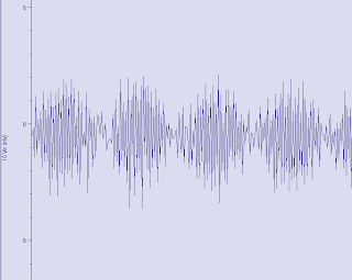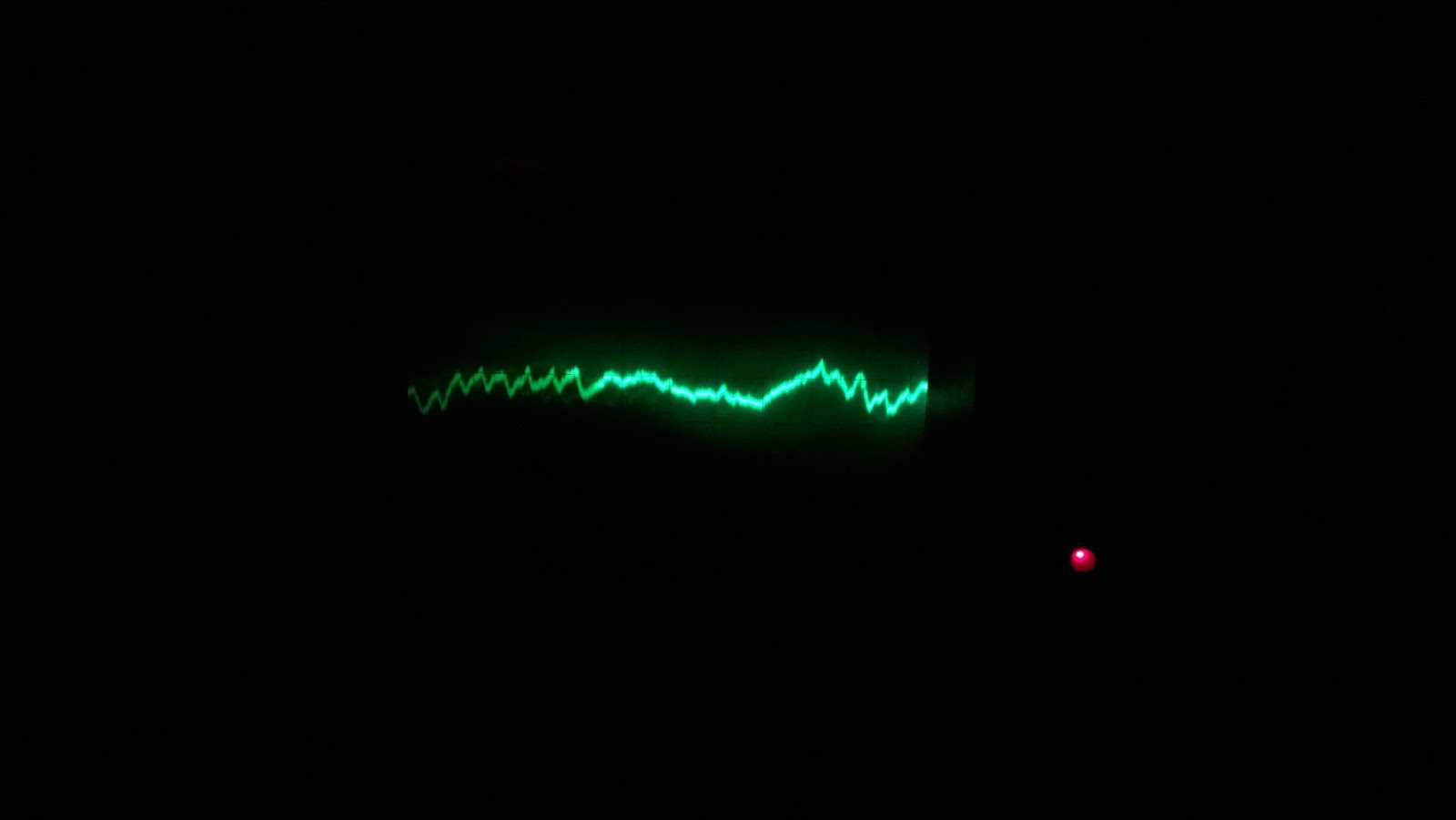 | Figure 2: Oscilloscope trace. This, and the amplifier lights were all I could see at the start. |